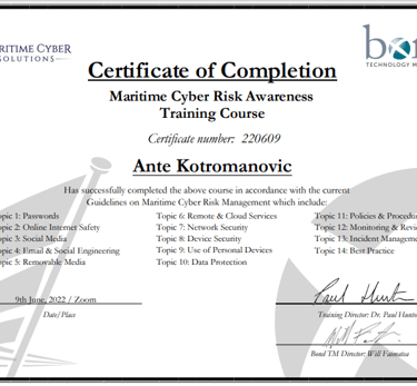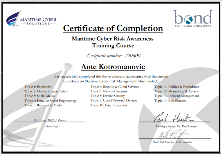 I've recently attended a useful course on maritime cyber risk awareness delivered by Maritime Cyber Solutions and BondTM.